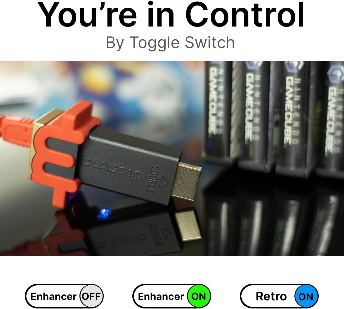 INSTANTLY UPGRADE ALL YOUR GAMES: Nintendo Switch, Original Xbox, PlayStation, GameCube, PS2, Wii, DreamCast, PS3, Xbox 360, Wii U, and many more. Unique gaming accessory that works with Nintendo Switch and retro game consoles equipped with HDMI adapters.